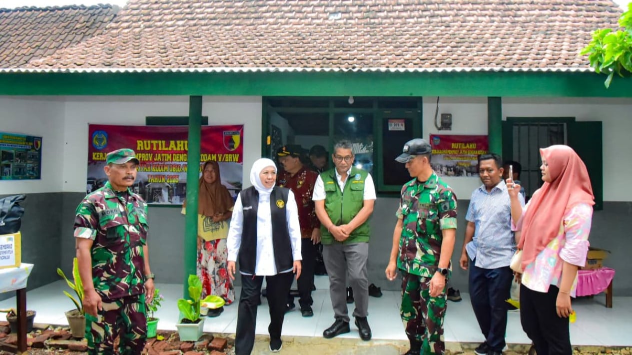 SURABAYA | SentraPos.co.id - Gubernur Jawa Timur Khofifah Indar Parawansa meninjau dua unit rumah warga di Desa Pace Kulon, Nganjuk yang telah selesai direnovasi melalui program Rumah Tinggal Layak Huni (Rutilahu) hasil kolaborasi Pemprov Jatim dan Kodam V/Brawijaya.