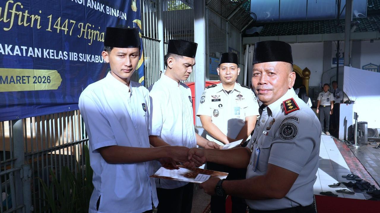 SUKABUMI | Sentrapos.co.id – Sebanyak 309 narapidana di Lapas Kelas IIB Sukabumi menerima Remisi Khusus (RK) Hari Raya Idulfitri 1447 Hijriah, Sabtu (21/3/2026).