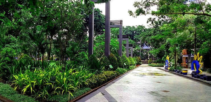 Taman asri dengan beragam tanaman tropis ini cocok untuk ngabuburit santai bersama keluarga. Area bermain anak tersedia dengan wahana aman.