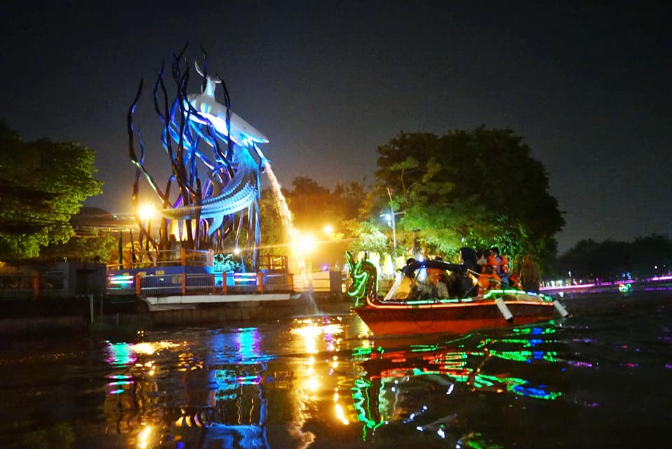 Berada di tepi Sungai Kalimas, taman ini menawarkan pengalaman unik berupa wisata perahu sore hari. Area bermain anak dan fasilitas edukasi berbasis QR code juga tersedia.