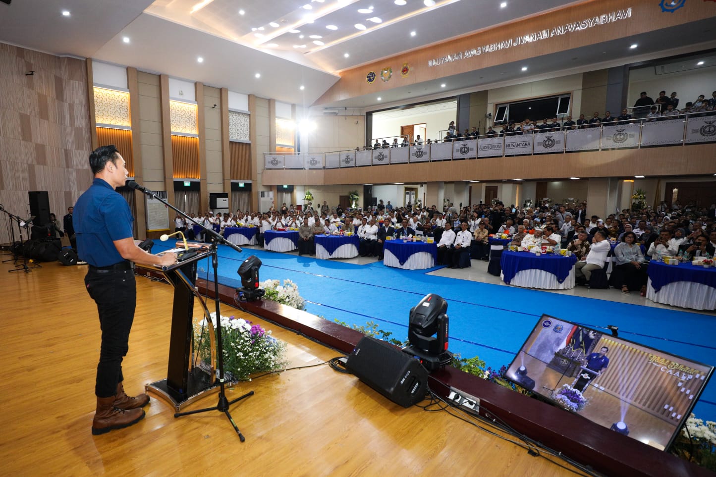Dalam sambutannya, AHY menekankan bahwa pembangunan infrastruktur maritim tidak bisa berjalan sendiri tanpa diiringi peningkatan kualitas SDM pelaut dan insan kemaritiman.