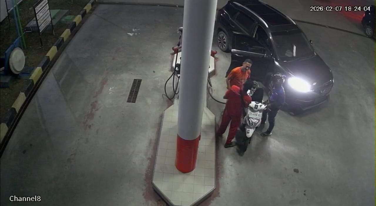 Pada saat bersamaan, operator SPBU bernama Ferdi tengah melakukan pengecekan stok BBM menggunakan deepstick manual sebelum melayani kendaraan roda dua yang sudah mengantre di depan mobil pelaku.