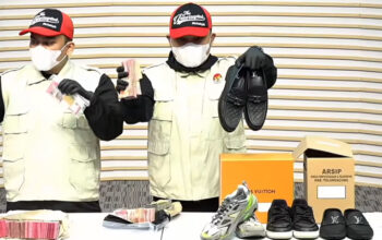 Dari empat pasang sepatu yang disita, salah satunya merupakan produk merek mewah Louis Vuitton. Total nilai keseluruhan mencapai sekitar Rp129 juta.