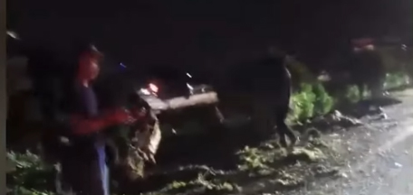 - Kecelakaan terjadi sekitar pukul 20.00 WIB, posisi bus berada di parit median jalan.
