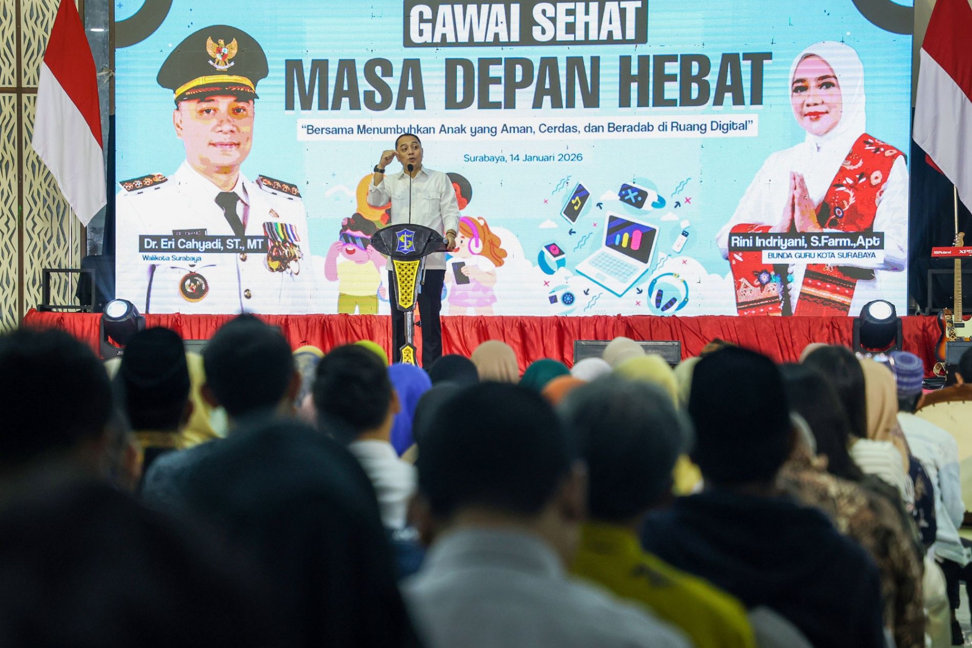 Wali Kota Surabaya, Eri Cahyadi, menegaskan bahwa perkembangan teknologi digital membawa dua sisi yang harus diantisipasi secara serius.
