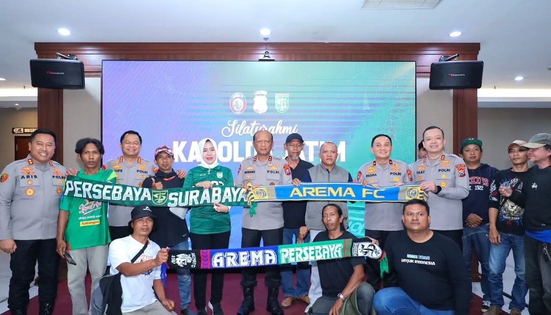 SURABAYA | Sentrapos.co.id — Upaya rekonsiliasi suporter di Jawa Timur semakin diperkuat menjelang laga derby Arema FC kontra Persebaya Surabaya. Kapolda Jatim Irjen Nanang Avianto memfasilitasi audiensi antara perwakilan Bonek dan Aremania di Mapolda Jatim, Rabu (8/4/2026) siang.
