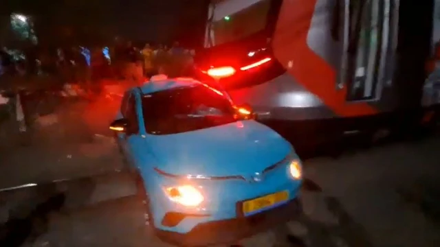 - KRL dari arah Cikarang menabrak taksi tersebut