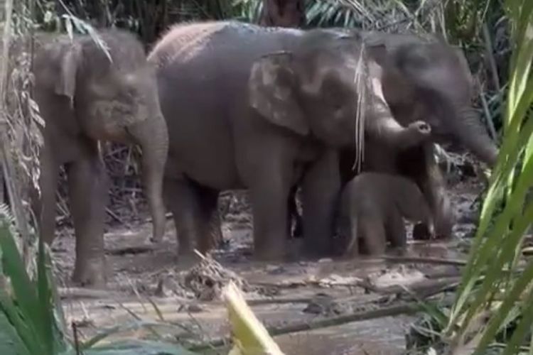 Sebelumnya, sebuah video yang memperlihatkan induk gajah bersama anaknya terjebak lumpur di area perkebunan sawit viral di berbagai platform media sosial.