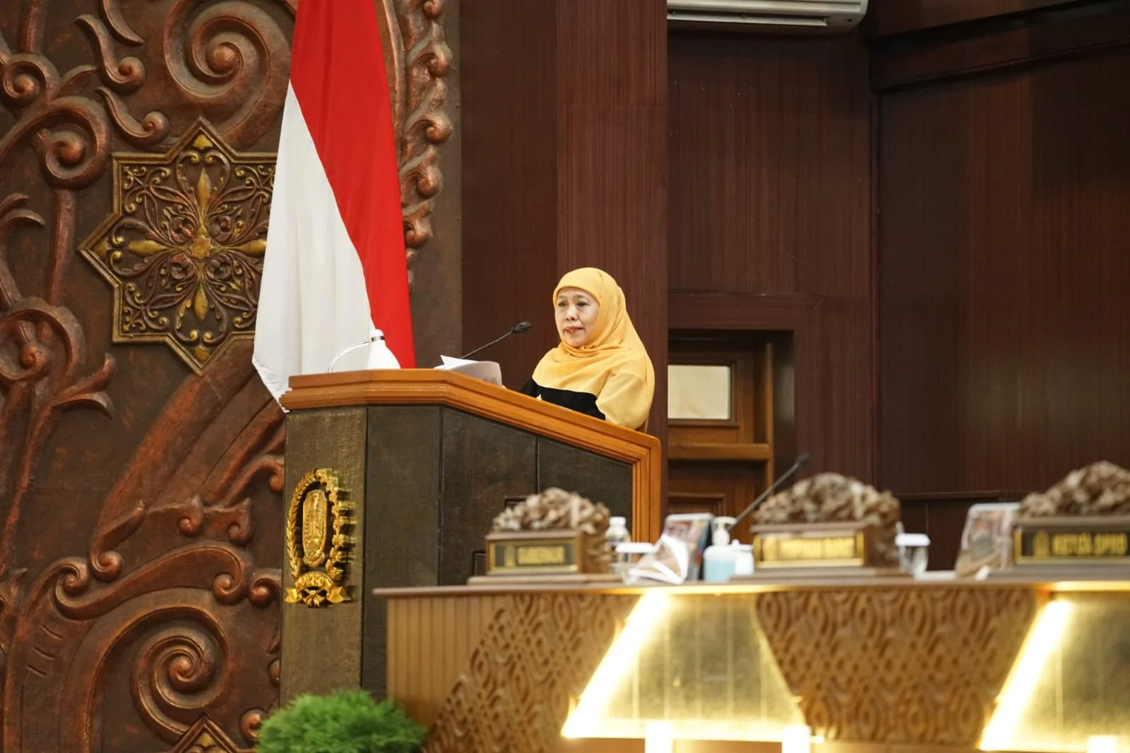 Khofifah menyampaikan bahwa capaian pembangunan kesehatan di Jawa Timur menunjukkan tren positif, termasuk penurunan angka stunting yang berhasil ditekan hingga 14,7% pada tahun 2025.
