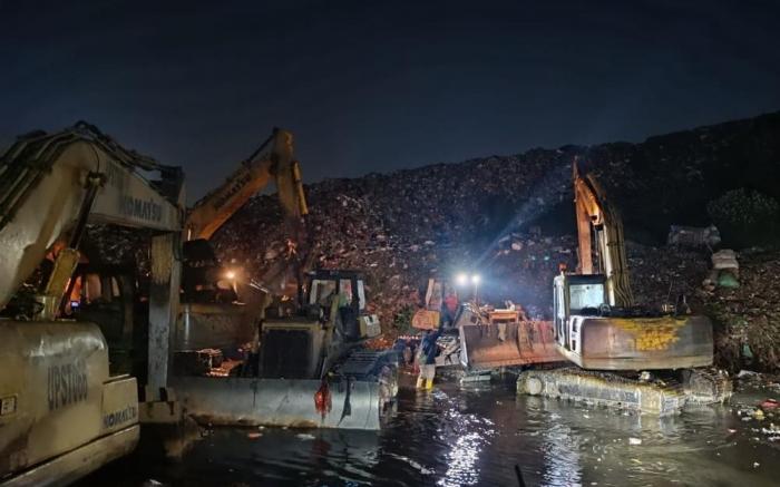 Tim SAR gabungan saat ini terus berupaya membuka akses material longsoran sampah dengan mengerahkan berbagai peralatan berat.