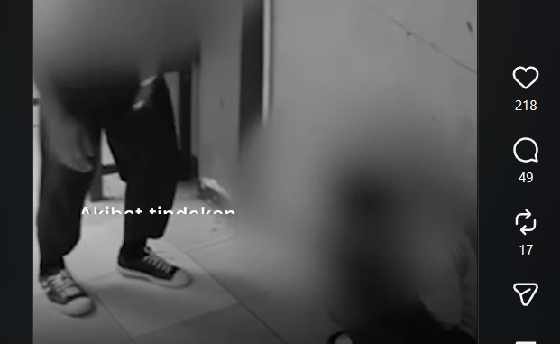Dalam rekaman yang beredar, terlihat seorang siswa laki-laki dalam kondisi tidak berdaya saat menerima perlakuan kasar dari temannya di dalam ruang kelas.