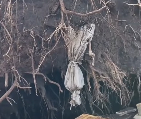 Video peristiwa tersebut menjadi viral di media sosial. Dalam rekaman, terlihat kain putih yang menempel pada akar pohon, diduga kain kafan jenazah yang ikut terangkat.