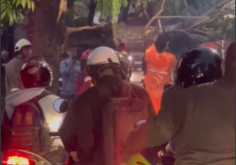 Dalam video yang beredar, terlihat sebuah mobil berwarna putih tertimpa pohon besar hingga berhenti di tengah jalan. Sejumlah pengendara motor tampak berupaya membantu mengecek kondisi penumpang di dalam kendaraan tersebut.