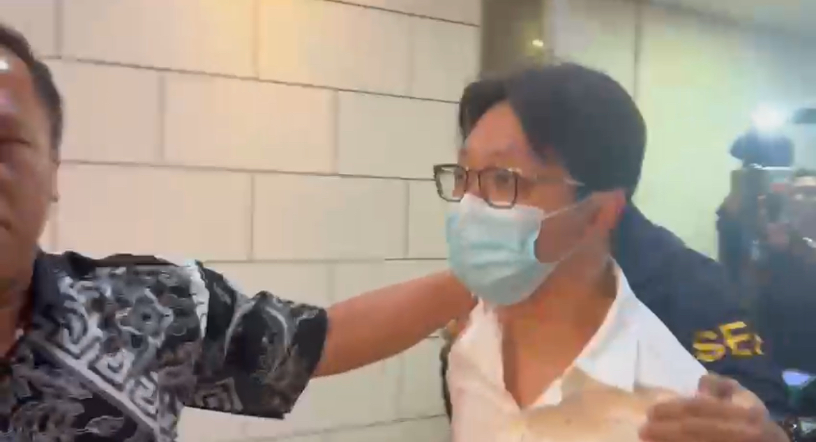 Ia mengenakan kemeja putih dan celana hitam, serta tampak berjalan tanpa memberikan komentar kepada awak media.