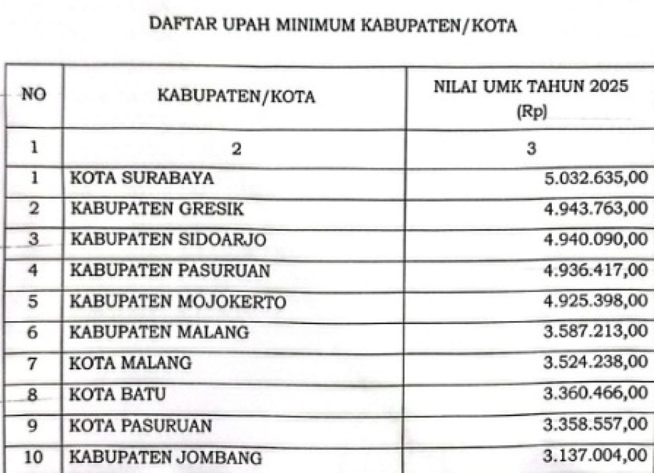 Berikut daftar UMK Jawa Timur 2026 jika naik 10,5% sesuai usulan buruh: