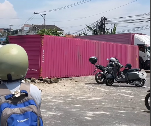 Menurut keterangan saksi, truk kontainer berpelat B 9517 FG yang melaju dari arah BSB diduga mengalami rem blong saat melintas di jalan menurun.