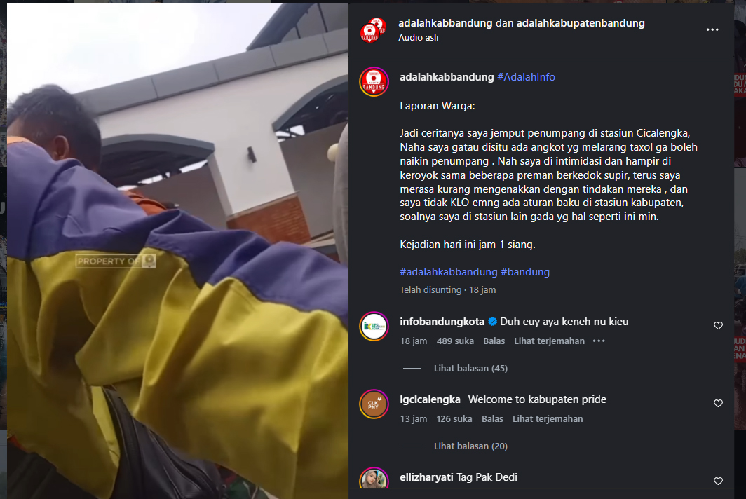 Video tersebut pertama kali beredar melalui akun Instagram @adalahkabbandung dan menunjukkan momen ketika seorang pengemudi taksi online diadang oleh sejumlah orang saat hendak menjemput penumpang di area stasiun.