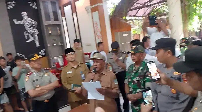 Kades berinisial US menyampaikan permohonan maaf secara terbuka di hadapan ratusan warga yang sebelumnya menggelar aksi protes di kantor desa pada Senin (6/4/2026).