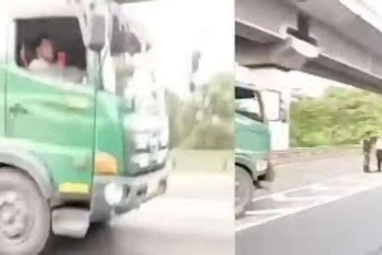 Dalam video yang beredar, terlihat petugas kepolisian menghadang iring-iringan kendaraan berat dan mengarahkan mereka keluar dari jalan tol. Momen yang menarik perhatian publik adalah saat seorang anggota TNI turun dari salah satu kendaraan yang dihentikan.
