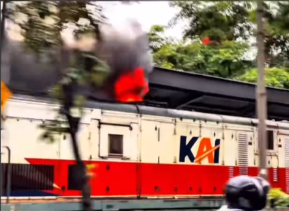 - Video lokomotif KA keluarkan api dan asap tebal viral di Surabaya