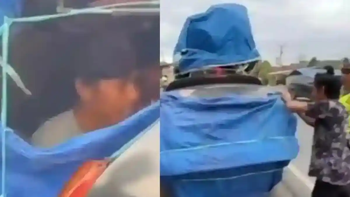 Dalam rekaman itu, terlihat petugas kepolisian menghentikan sebuah mobil berwarna hitam di pinggir jalan karena mencurigai kondisi kendaraan yang tidak wajar.