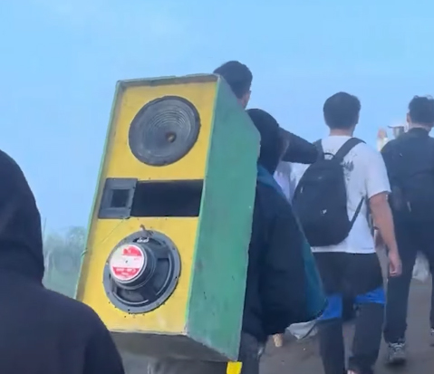 Video yang diunggah salah satunya oleh akun Instagram @infokabarmagelang itu memperlihatkan seorang pemuda berjalan santai sambil menggendong speaker kotak yang terus memutar musik sepanjang perjalanan pendakian.
